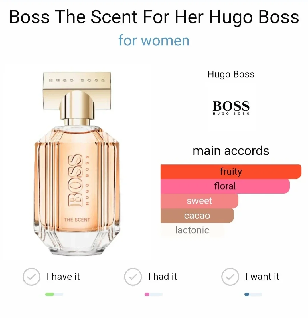 Placez-vous sous les feux de la rampe. BOSS The Scent for Her Eau de Parfum célèbre l’art d’un charme irrésistible. Audacieuse mais élégante, cette création ambrée, florale et fruitée raconte l’histoire d’une alchimie indéniable. Ses contrastes s’unissent dans une harmonie parfaite pour former un parfait qui s’impose comme une déclaration d’assurance et de sensualité.