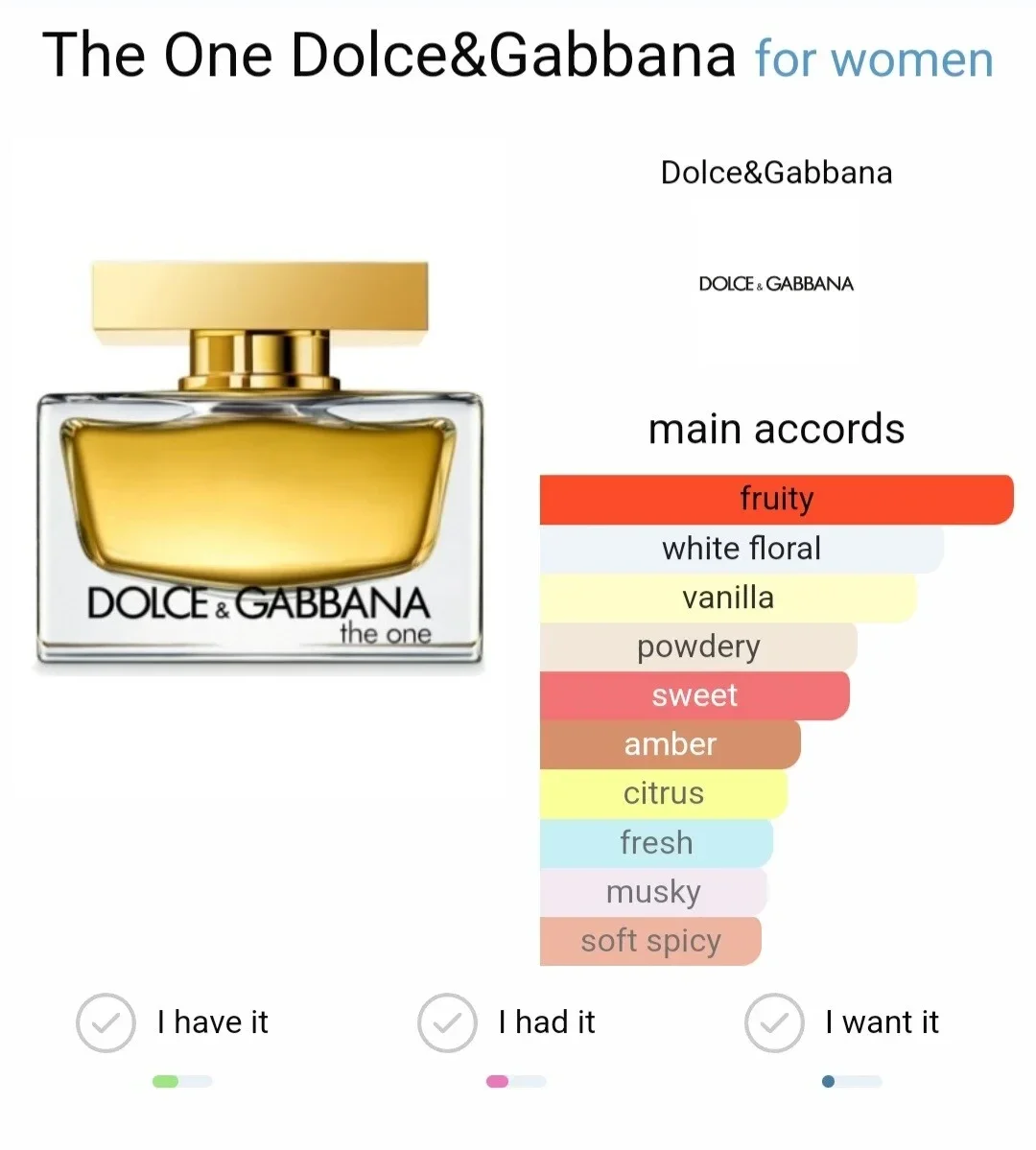 Succombez à la magie de Dolce & Gabbana The One et laissez votre féminité s’exprimer. Levez toutes les barrières et devenez enfin différente, irrésistible et sensuelle. Cet exceptionnel parfum féminin souligne votre sensualité et votre sex-appeal pour vous transformer en une femme émancipée, forte, qui dépasse joyeusement les obstacles de la vie en gardant toujours beaucoup de grâce et le sourire aux lèvres.