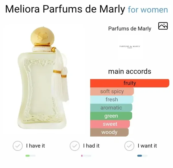 La marque Parfums De Marly s’inspire de la beauté féerique du château de Versailles et du mode de vie hédonique de Louis XV, qui était, entre autres, passionné de courses hippiques. L’eau de parfum Meliora porte le nom d’une jument pur-sang, mère du célèbre étalon Herod.