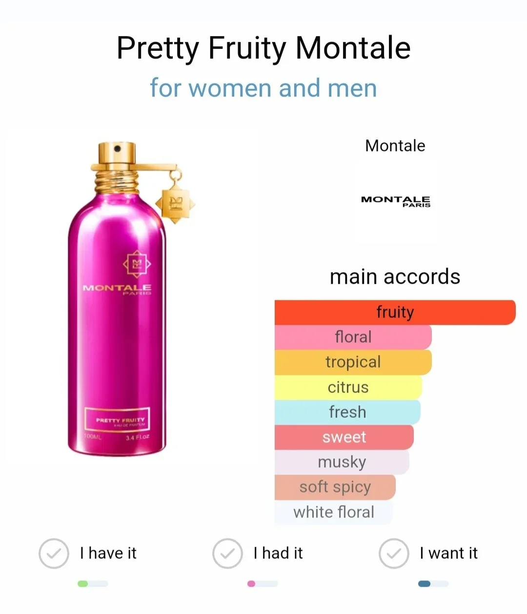Une célébration en flacon. L’Eau de Parfum Montale Pretty Fruity incarne une ambiance nonchalante et enjouée, avec une explosion de notes fruitées, gourmandes et denses, qui captive les sens. Idéale pour les soirées entre amis ou les journées de farniente au soleil, elle est un compagnon joyeux qui ajoute une touche de gaieté à toutes les occasions. Laissez-vous transporter par Pretty Fruity vers des moments d’insouciance et des aventures ensoleillées, transformant chaque journée en une fête.