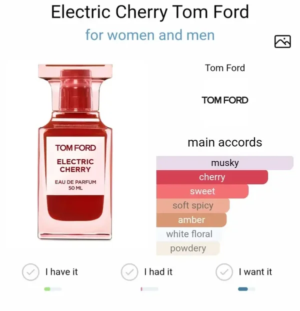 ELECTRIC CHERRY est une eau de parfum qui associe la délicieuse acidité des griottes au gingembre enivrant et au jasmin sambac opulent, pour des arômes envoûtants et envoûtants. L’ambrettolide libère quant à elle un souffle chaud de musc, sublimé par le piquant du poivre rose. « Electric Cherry est à la fois pétillant et espiègle… » Ce parfum capture les prémices palpitantes d’une nouvelle romance. — Tom Ford. Un parfum longue tenue. Un sillage floral qui dure toute la journée.