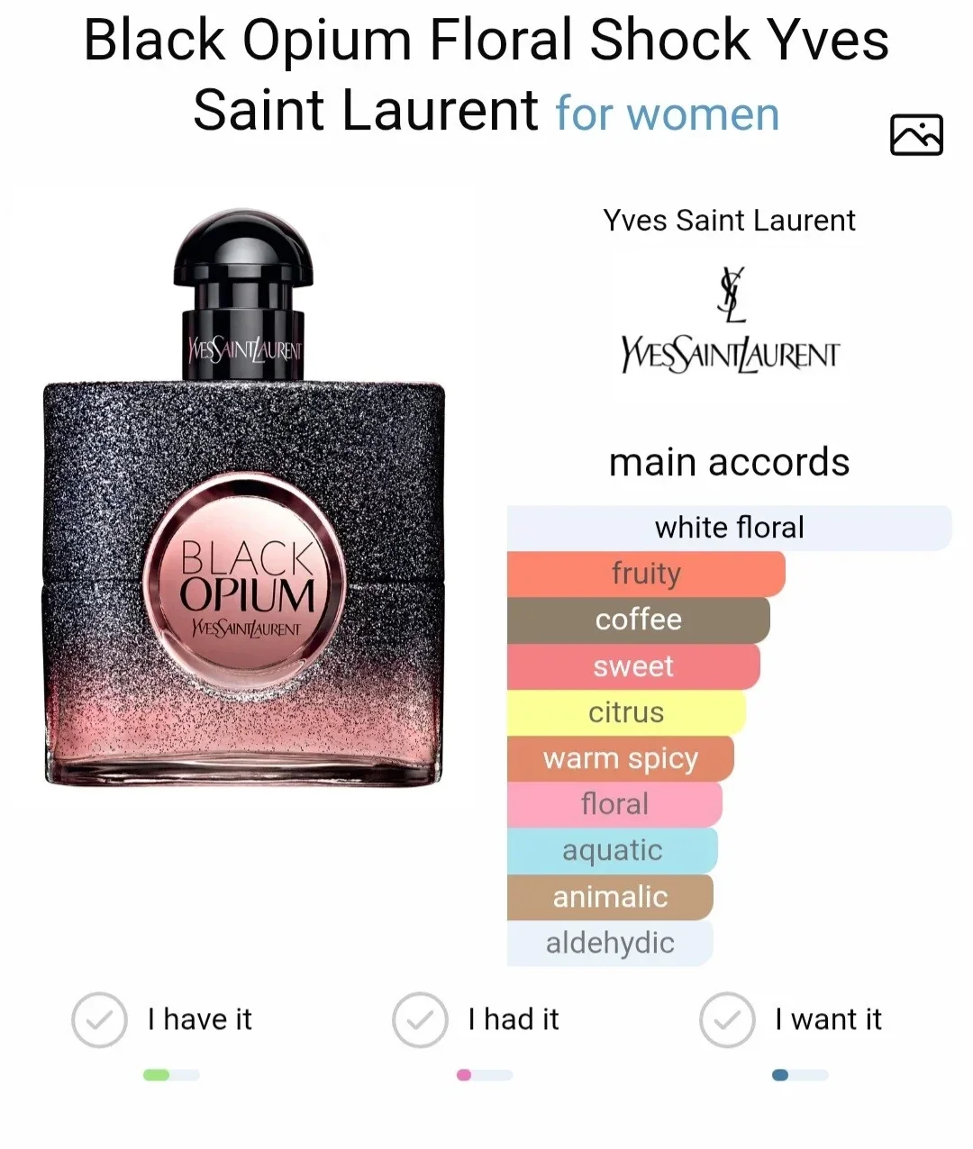 Yves Saint Laurent annonce la sortie début 2017 d'une nouvelle édition de sa célèbre collection Black Opium, baptisée Black Opium Floral Shock. Cette nouvelle édition, plus fraîche, se distingue par des notes florales et vertes, et est la première à proposer un accord « café glacé ». Cette nouvelle composition s'inscrit dans la famille des notes fruitées, florientales et « choc » avec un départ citronné zesté, un cœur floral blanc dominé par le gardénia, et un fond de café glacé et de musc blanc.
