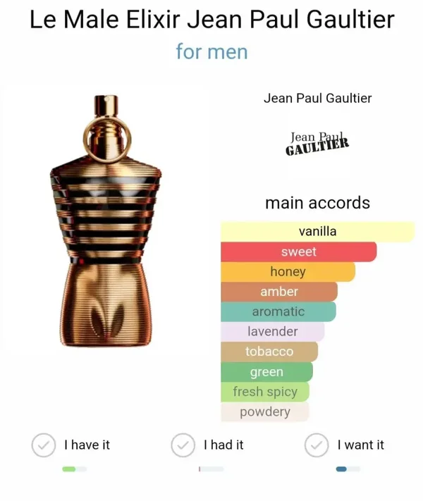 Bienvenue à bord ! Le parfum pour homme Le Male Elixir incarne le charme irrésistible du marin qui enfièvre tout sur son passage. Cette histoire est soulignée par son flacon unique en forme de torse d’homme et orné de rayures dorées très stylées évoquant une marinière.