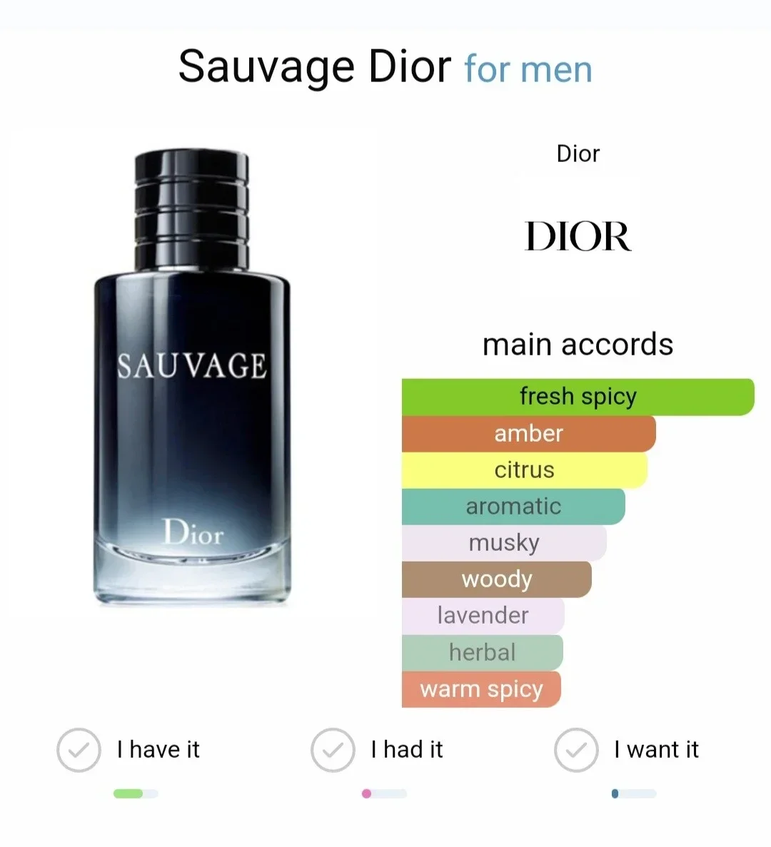 Le parfum d'une nouvelle frontière : une variation au sillage enrichi et enivrant qui célèbre la magie des grands espaces. « Sauvage est une partition infinie. Sa composition est si dense qu’on peut lui donner des éclairages inédits en la façonnant avec des nuances subtiles.