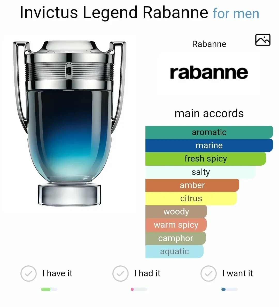 Réveillez votre puissance, devenez le héros absolu. Le parfum pour homme Rabanne Invictus Parfum est une fragrance aromatique intense. Son parfum est celui de la victoire et de la force d’esprit à laquelle aucun obstacle (ni personne) ne résiste. Rien n’est impossible avec ce parfum exaltant aux accords de lavande et de bois de santal. Commencez à écrire votre histoire.