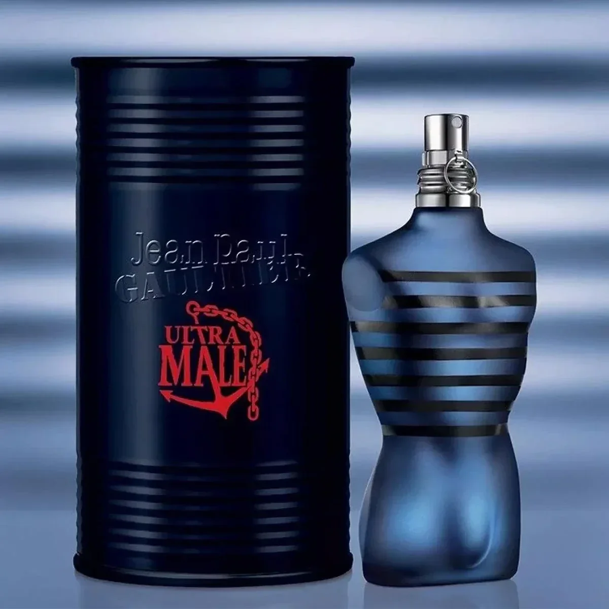 Jean Paul Gaultier Le Male Ultra vous plonge dans l'histoire d'un marin irrésistible, vêtu d'un uniforme bleu marine à rayures noires. Ce design plein d'esprit met en valeur une fragrance intense, masculine et délicieuse, présentée dans un écrin métallique, et prolonge l'histoire.