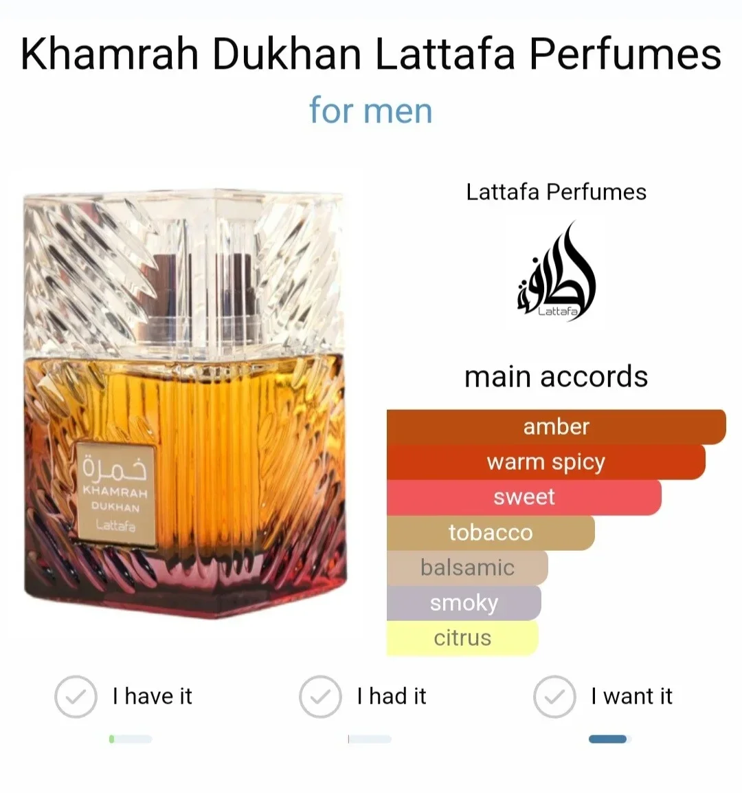 La fumée est un antique symbole de purification, de sensualité et de pouvoir. L’eau de parfum Khamrah Dukhan de Lattafa s’inspire des traditions qui lui sont liées afin de créer une senteur charismatique et orientale. Sombre et hypnotique, cette fragrance unisexe par essence possède un caractère masculin appuyé.